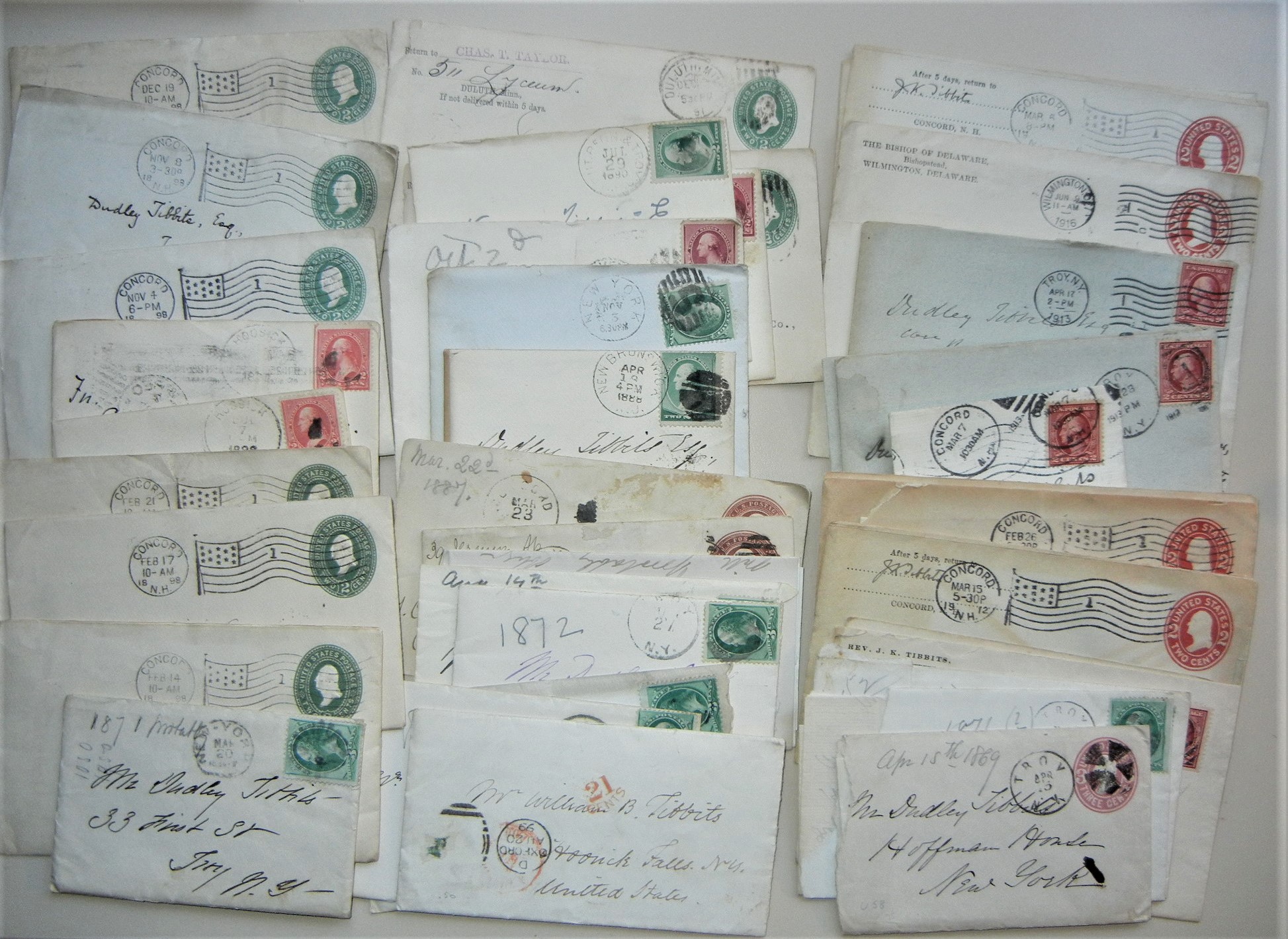 This is a large lot of correspondence with envelopes and two postcards (one from France) primarily from John Tibbits to his father, C. E. Dudley Tibbits. John became a minister in New Hampshire. Lots of interesting reading. Postmarks from New Hampshire, New York, Minnesota and France. See image. Charles Edward Dudley Tibbits, was born at Hoosac, New York, August 18, 1834. He was educated under private tuition at Troy and Hoosac, and later took a course at the Rensselaer Polytechnic Institute in Troy. In 1851 he made his first visit to Europe, crossing the ocean in a sailing vessel. He saw at that time the first International Exhibition at the Crystal Palace in London. This was the first of many voyages. He was largely occupied with the care of his own and of family property. He was president of the Walter A. Wood Mowing & Reaping Machine Company, of Hoosick Falls, from 1892 to 1895, when he resigned, and for a number of years was a director of the company; he is also a director of the United National Bank of Troy. He is a trustee of the Troy Orphan Asylum, and was chairman of the committee which selected the plans for the asylum building on Spring avenue. He was president in 1879 of the Young Men's Association, and is a trustee of the Troy Public Library, which now carries on the work formerly done by that association. As trustee of the library, he chose the design from which the Memorial Library Building on Second street was erected. Mr. Tibbits was chairman of the committee of one hundred citizens who were charged with making arrangements for the public celebration of the one hundredth anniversary of the naming of the city of Troy, in January, 1889. Mr. Tibbits married, June 8, 1865, Mary Elizabeth, daughter of John Le Grand and Elizabeth (Sigourney) Knox. She died July 16, 1875. Children: Sarah Bleecker, born November 15, 1866. George, born February 22, 1868, died April 29, 1875. John Knox, born January 13, 1870; educated at St. Paul's School, Concord, New Hampshire; Yale College, B.A., class of 1892; Exeter College, Oxford, England; he is an Episcopal clergyman at Concord, New Hampshire. He married, April 12, 1910, at Montreal, Canada, Marguerite Vinton Harris, daughter of Arthur H. and Saidee (Lambe) Harris, of that city. Dudley, born October 4, 1874, died May 24, 1875.