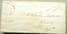 PORTSMOUTH NEW HAMPSHIRE 1830 STAMPLESS FOLDED LETTER TO CONCORD MASSACHUSETTS