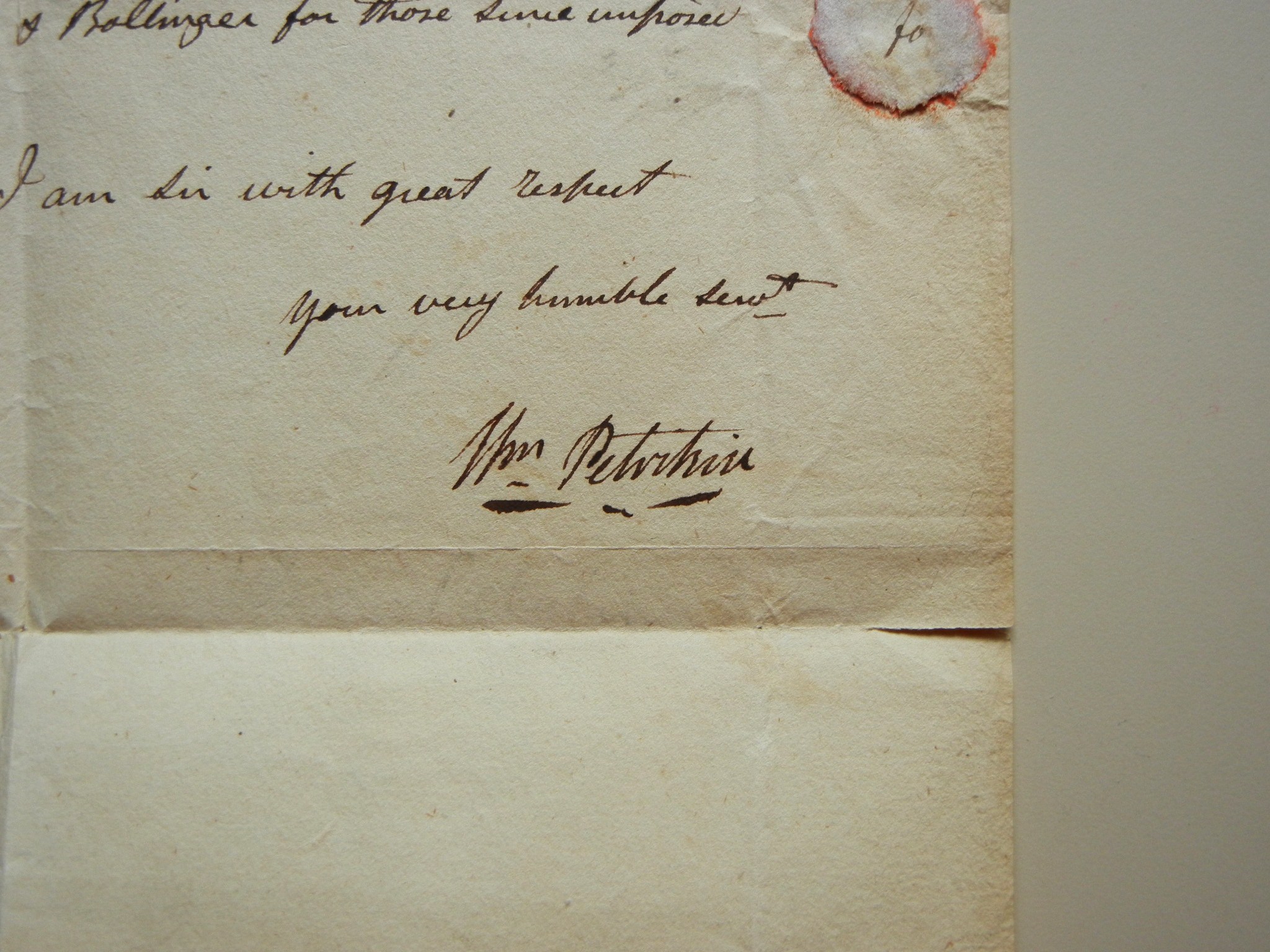 The signature of William Petrikin should rank up there with signatures on the Declaration of Independence. See details below of his contribution to the fundamental principles of the United States. This letter fragment has great historic significance.