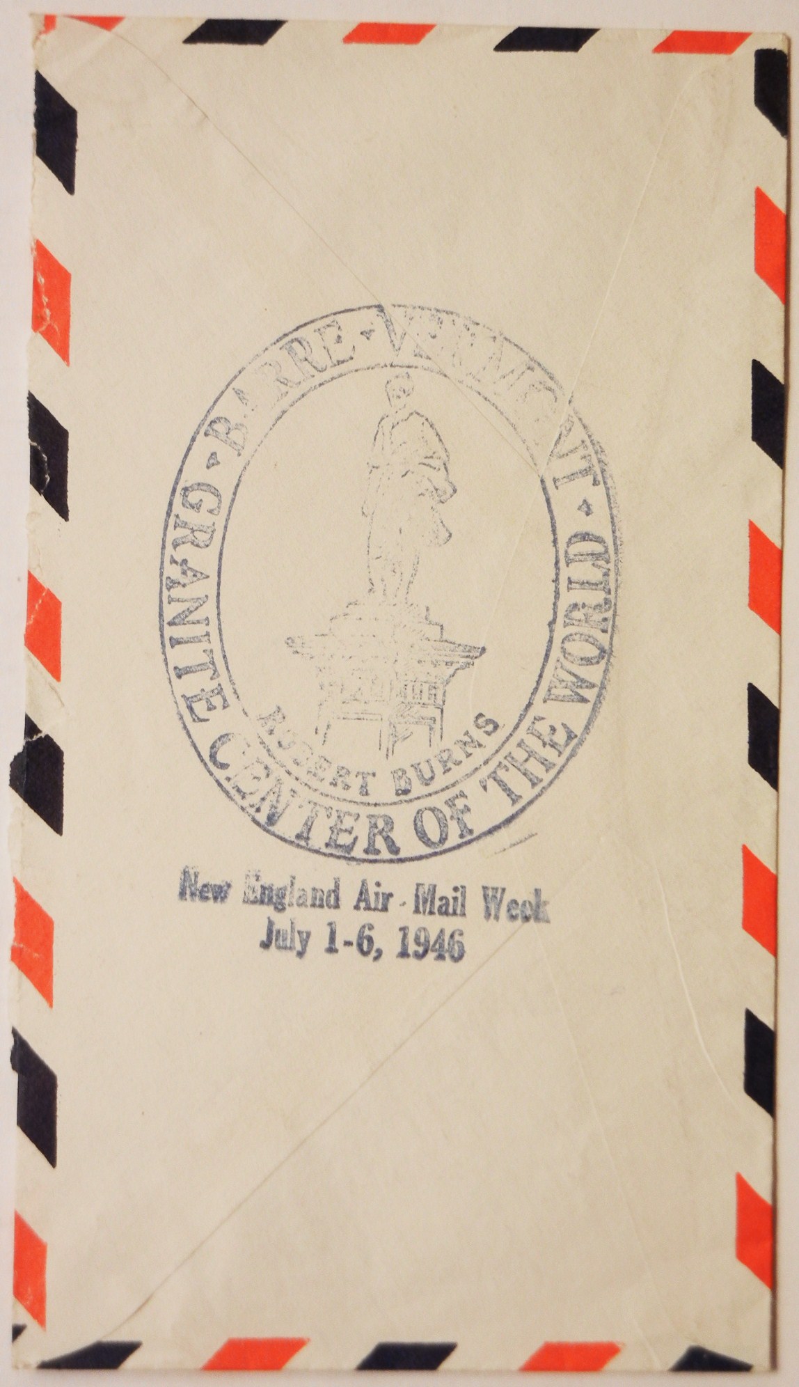 Hand stamped Barre Vermont - Granite Center of the World with vignette of Robert Burns cachet on reverse side of cover. Very clean. Opened at bottom.