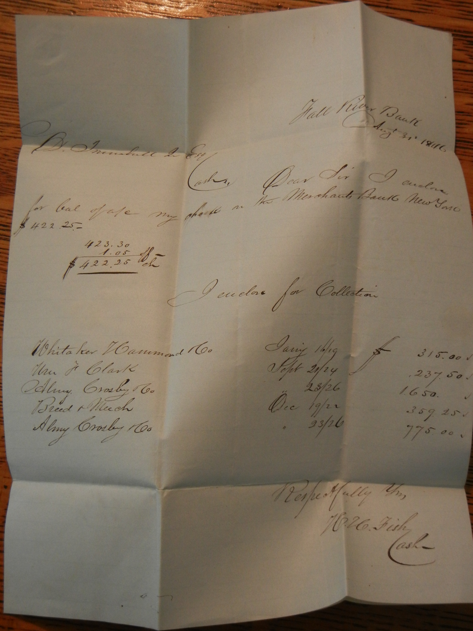 Correspondence between two cashiers regarding balances and items to collect. Names mentioned in letter need research.