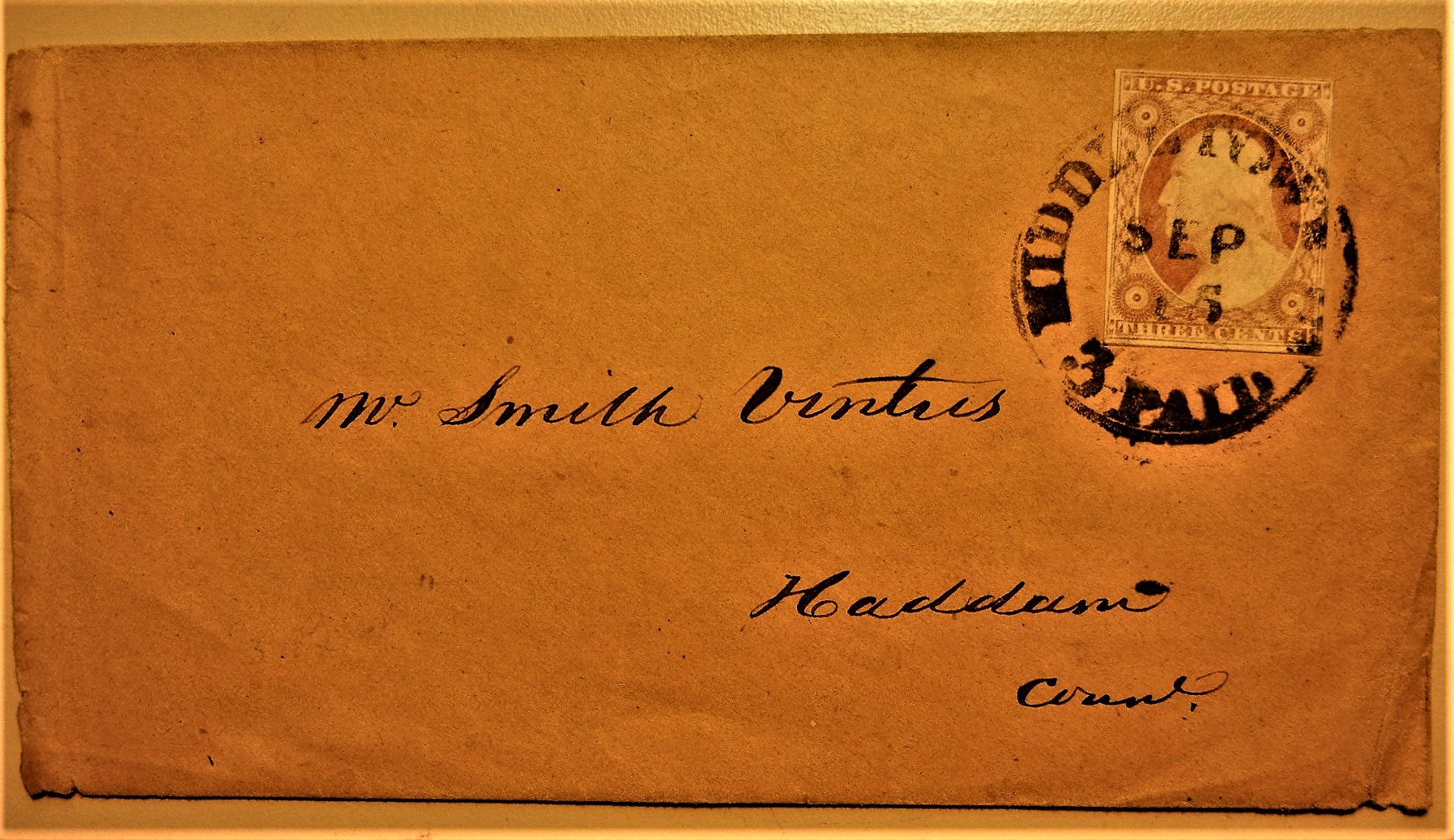 Four-margin stamp with sock-on-the-nose Middletown Connecticut date cancel. Clean, attractive cover.