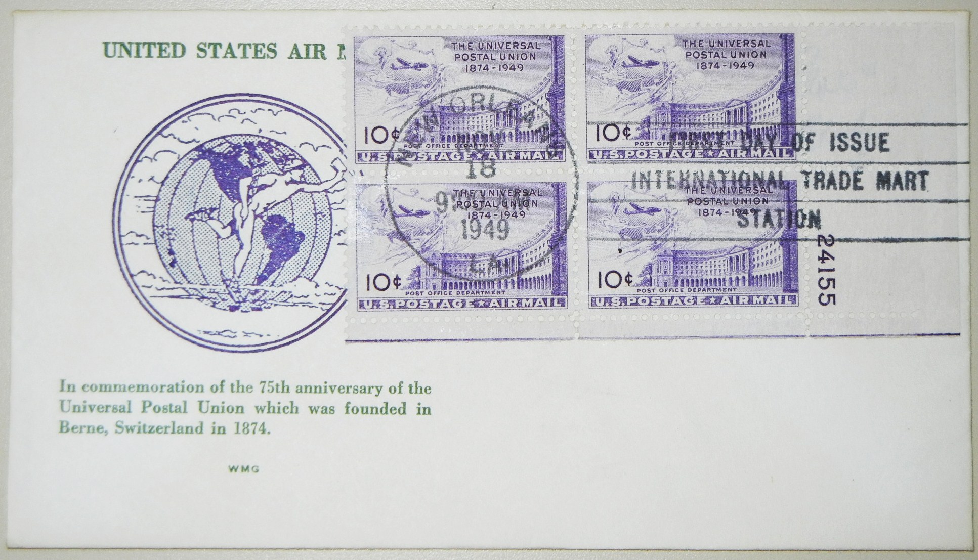 New Orleans, LA first day postmark from the International Trade Mart Station. Cat is $50 for a block...plate block is premium item.
