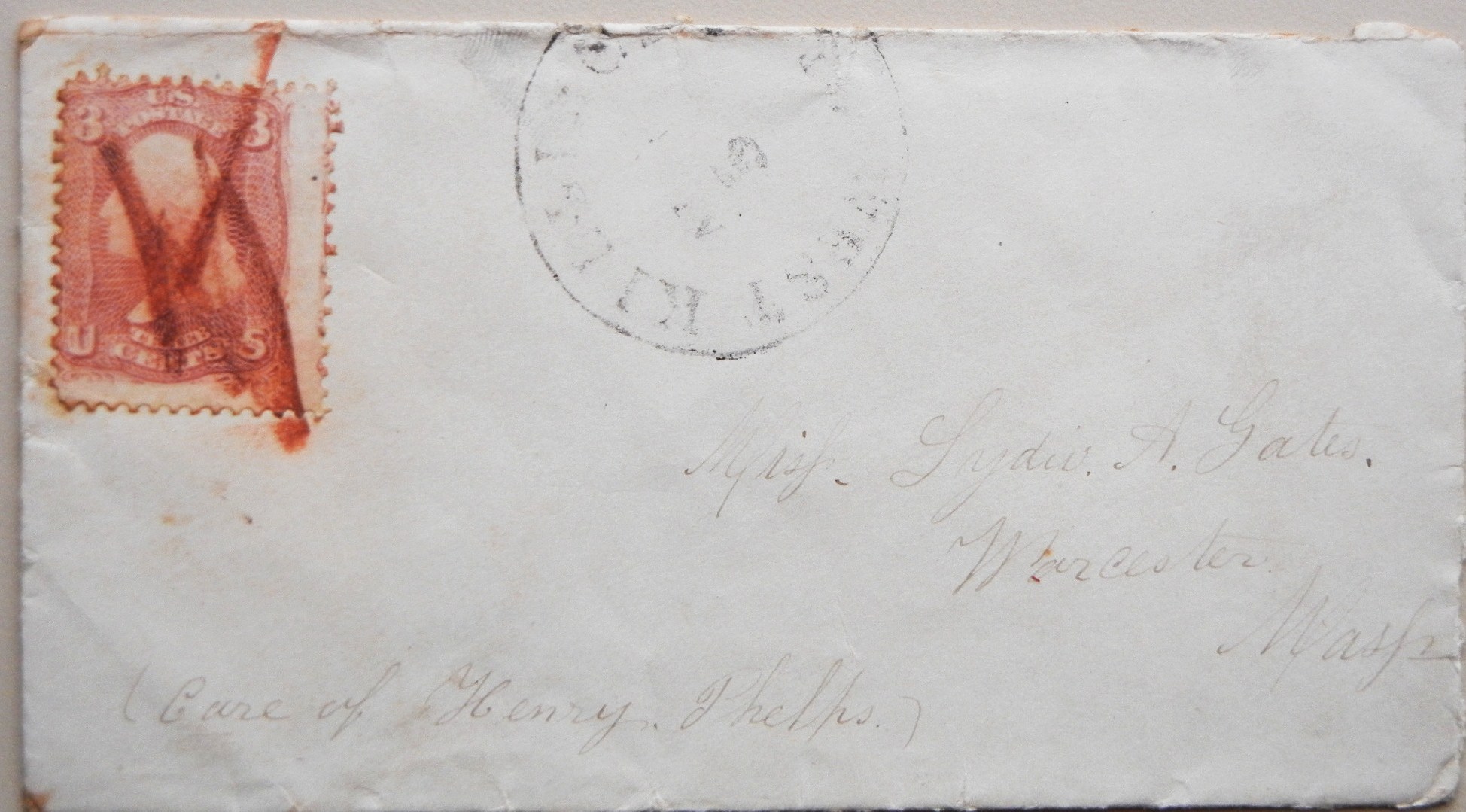 Very rare postmark on this cover. Postmark is light, but readable. Stamp is canceled with heavy red ink.