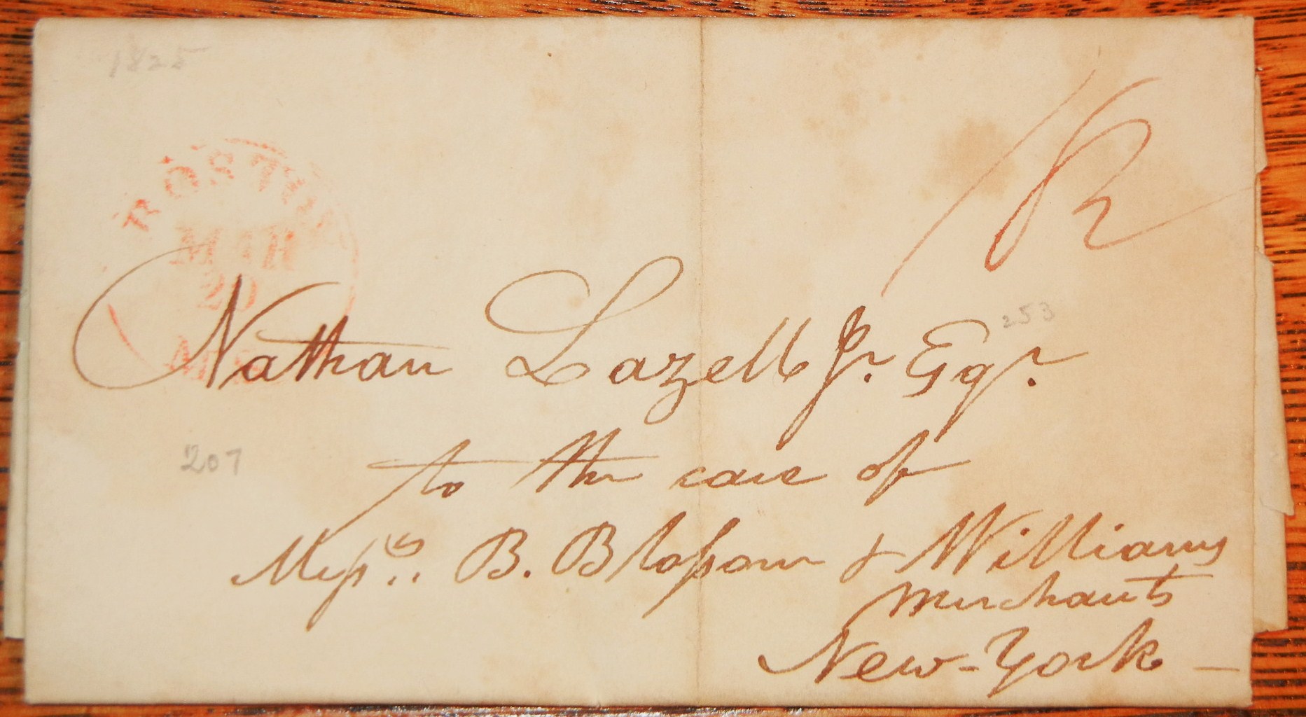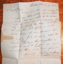 Interesting letter from Cushing & Ames to Nathan Lazelle regarding an increase in the demand and therefore the price in nails. They had been selling at 6 cents a pound and will now sell at 7 cents a pound. Full but light Boston 1820s #207 postmark on cover. 18.50 manuscript rate. Separation on overleaf does not affect letterpage.