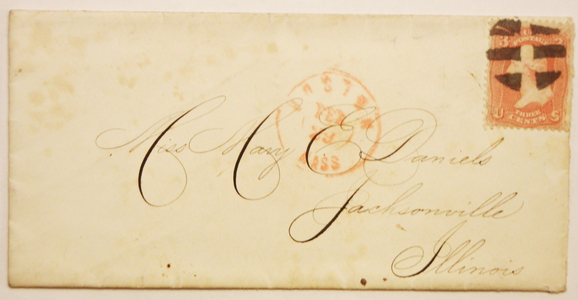 Good Boston postmark. Fancy cancel. Stamp looks like it was straight edge at right that was made a bit ragged in opening.