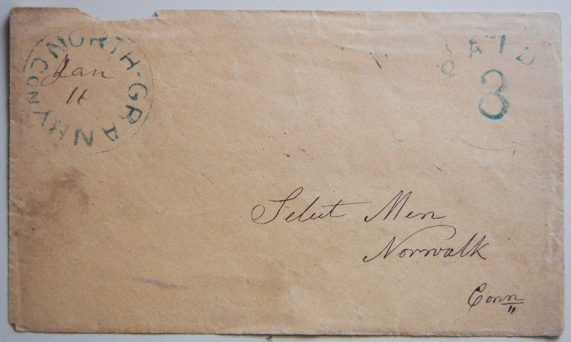 Hard to find postmark along with nice Paid 3 in blue. FRONT ONLY