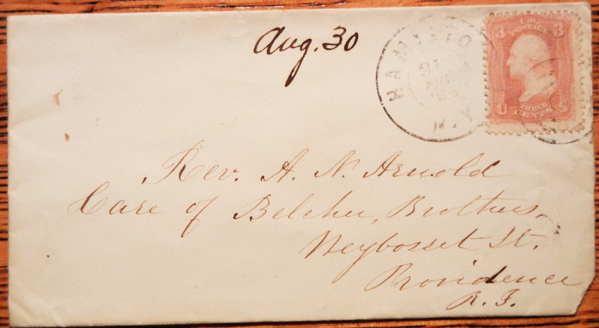 Reverend Arnold was a Baptist Minister well-regarded for his sermons and religious leadership. His "Peace the Fruit of Righteousness: A sermon Preached in Westboro, Massachusetts, on Fast Day, April 2, 1863" is still available from booksellers. He attended Brown University and was stationed in both Providence Rhode Island and Westborough Massachusetts.