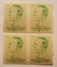 Rare block of 4 Cinderella Stamps issued by the Svenska (Sweden) Scout Union to honor Count Felix Bernadotte. Here are details of his life: